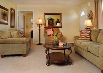 - The spacious living room gives you plenty of room to relax, whether it’s for movie marathons or Sunday afternoon naps.