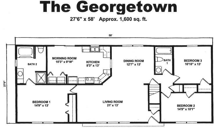 The Georgetown model offers 1,600 sq. ft. of classic living space that balances comfort, function, and style. Designed with both new homeowners and downsizers in mind, it provides an inviting and practical layout perfect for everyday living and entertaining. The home features three well-sized bedrooms and two full bathrooms, with the master suite serving as a private retreat. A bright, eat-in kitchen flows seamlessly into the dining and morning rooms, while the expansive 21’ x 13’ living room is filled with natural light, making it the centerpiece of the home. With the option to add a sliding door that opens to an outdoor entertainment area.