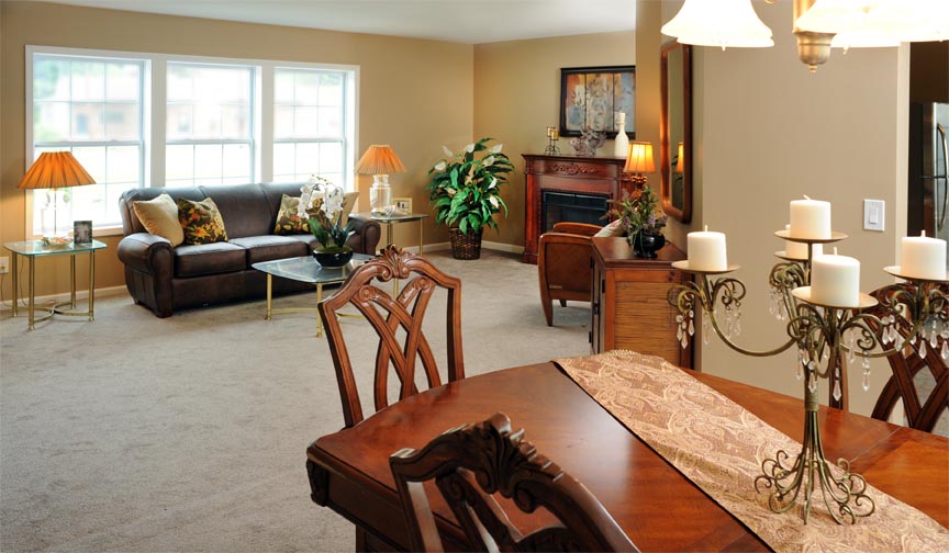 • A centrally located dining room connects the kitchen and living room for easy entertaining.